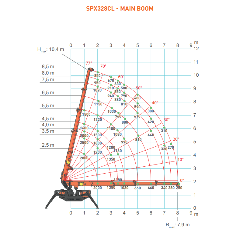 Det intuitive styresystem og avancerede sikkerhedsfunktioner gør SPX328 til en pålidelig løsning inden for løfteindustrien. Den tilbyder ikke kun teknologisk innovation, men også fleksibilitet og pålidelighed på byggepladser, i industrien og ved vedligeholdelsesopgaver. For detaljerede tekniske specifikationer og yderligere information er vi klar på telefonen.